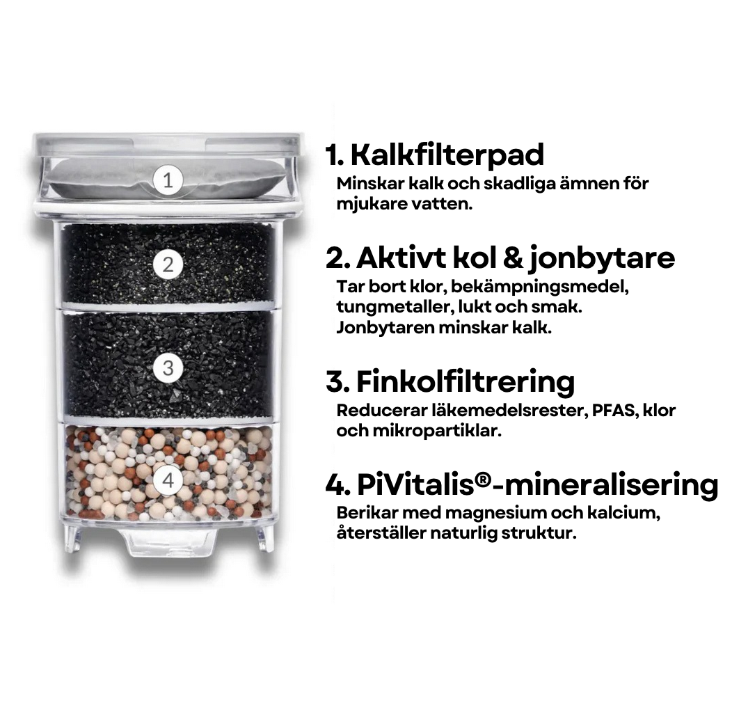 Tehokkaat ja tyylikkäät vedenpuhdistuskannut, jotka poistavat jopa 99,9 % kloorista, raskasmetalleista ja epäpuhtauksista säilyttäen tärkeät mineraalit. Täydellinen 1–3 hengen kotitalouksille.