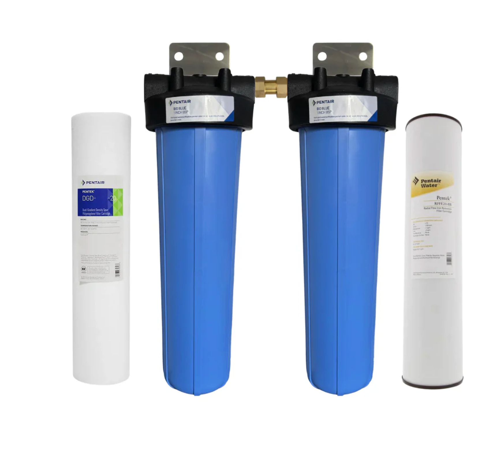 Vedenpuhdistin DUO 20″ – Rauta- ja sedimenttisuodatus (Pentair Pentek RFFE + DGD)